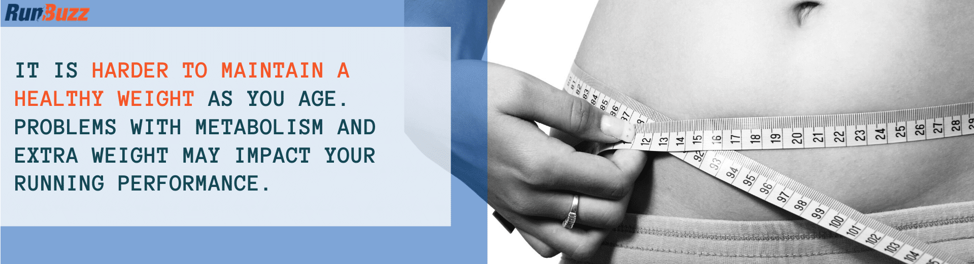 Another factor that we have with getting older is the impact of our body composition. So as we get older, weight management becomes harder. Not always but as we age, most of us start putting on some weight. And it becomes harder to maintain our healthy weight even if we run because our poor diet in some cases catches up to us. We're often more stressed out and our metabolism is whacked.